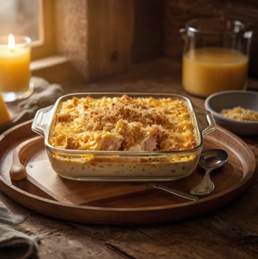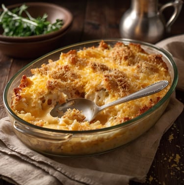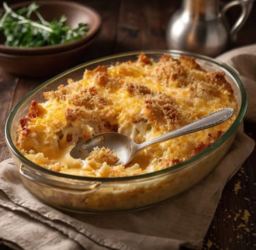 Pour into a baking dish and top with remaining cheese and breadcrumbs.