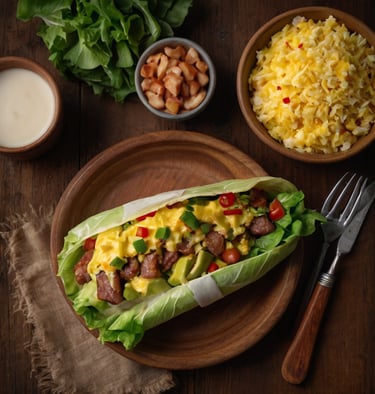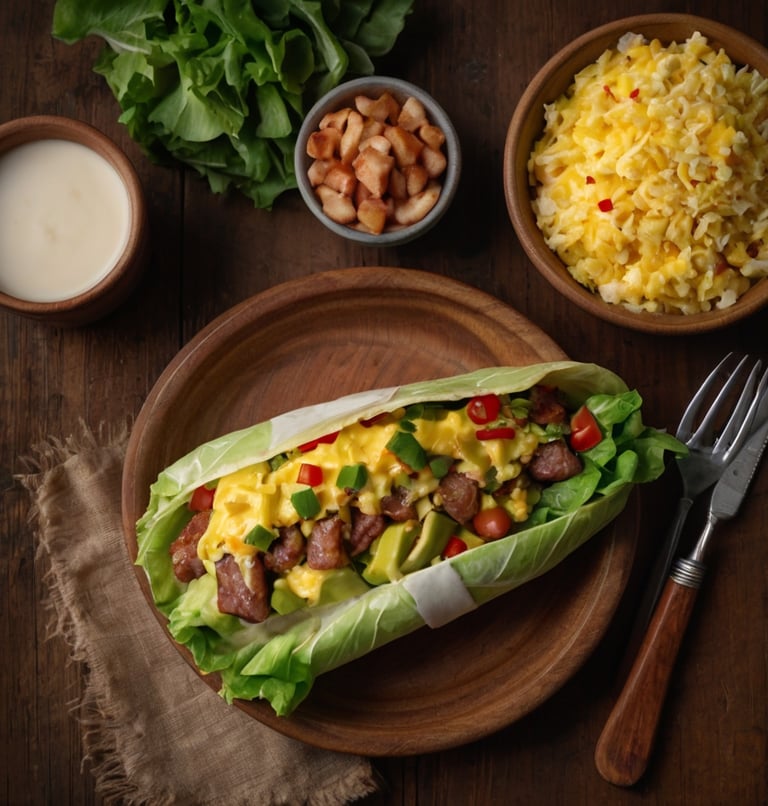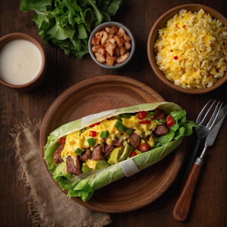 6. Fill a romaine leaf with the sausage and egg.