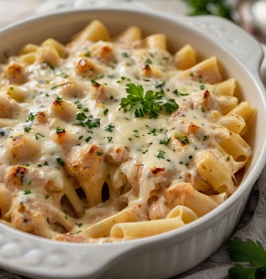Pour in Alfredo sauce, simmer for 5 minutes.