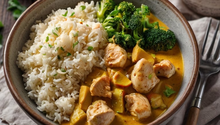 5. Pour in the rest of the coconut cream, chicken stock, broccoli and zucchini