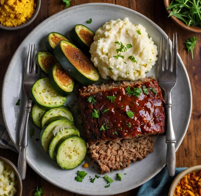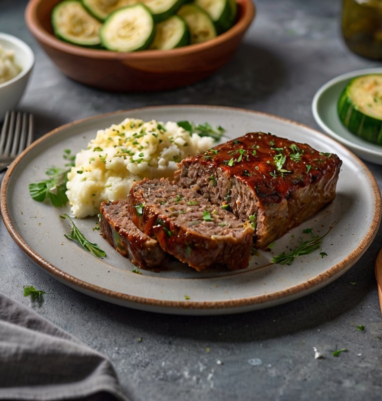 1. For the meatloaf, mix all ingredients in a bowl and transfer to a greased and