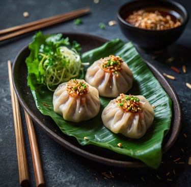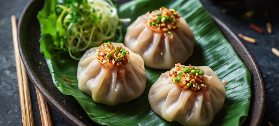 4. Place dumplings in the steamer for 10 minutes, then finish in a hot pan with a