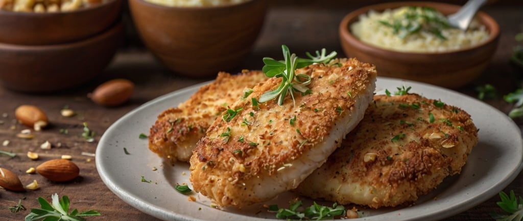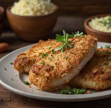 2. Combine the parmesan cheese and almond flour in a medium shallow bowl. In another bowl, whisk the eggs.